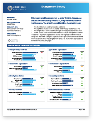 Analyze your organization's engagement levels using the Harrison Employee Engagement Survey. Receive an in-depth customized engagement report which details the engagement pulse of your organization including:
