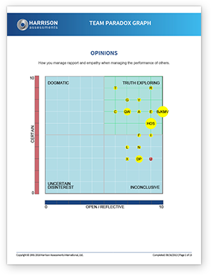Harrison Team Analytics identifies the factors that help or hinder teams from achieving their objectives by identifying areas of functional diversity and dysfunctional conflict.