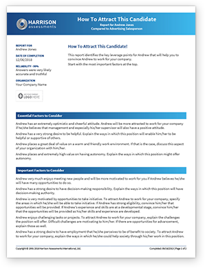 In-depth behavioral reports help you to make the final decision, and after the employment decision, the "How to Attract Report" enables you to convince the best applicant to work for you. All applicants can be automatically notified of their job success.